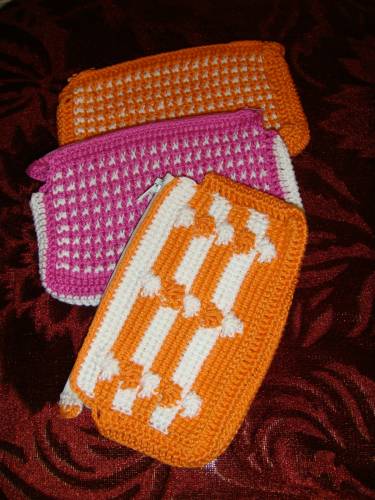 Косметички связаны тунисским крючком из 100% хлопка.Цена 4,00 лата